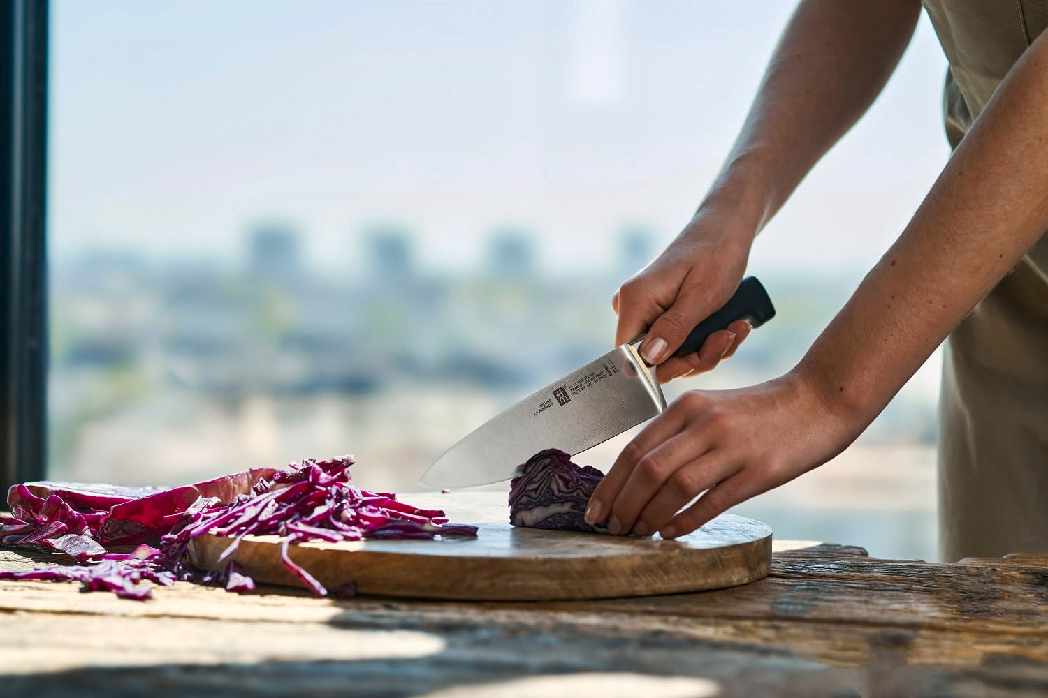 ZWILLING Vier Sterne Kochmesser, Klingenlänge: 20 cm, Rostfreier Spezialstahl, Ergonomischer Kunststoff-Griff, Schwarz [Made in Germany]