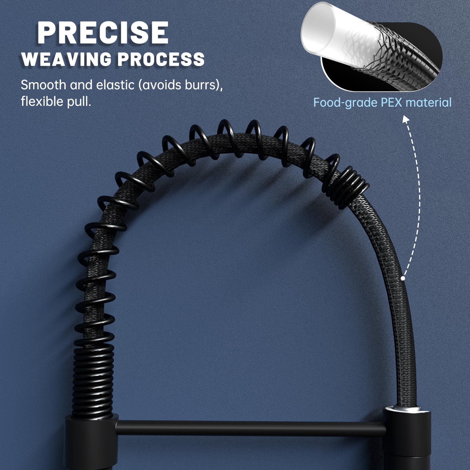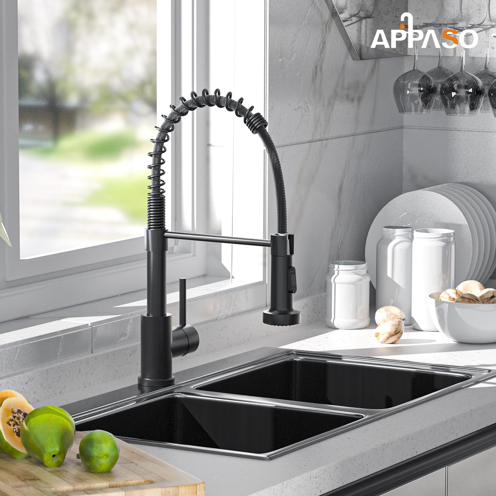 APPASO Wasserhahn Küche Schwarz, Hochdruck Küchenarmatur Schwarz mit Brause, Mischbatterie Küche mit 2 Strahlarten, Spültischarmatur für Küche 360° Drehbar | Edelstahl Mattschwarz