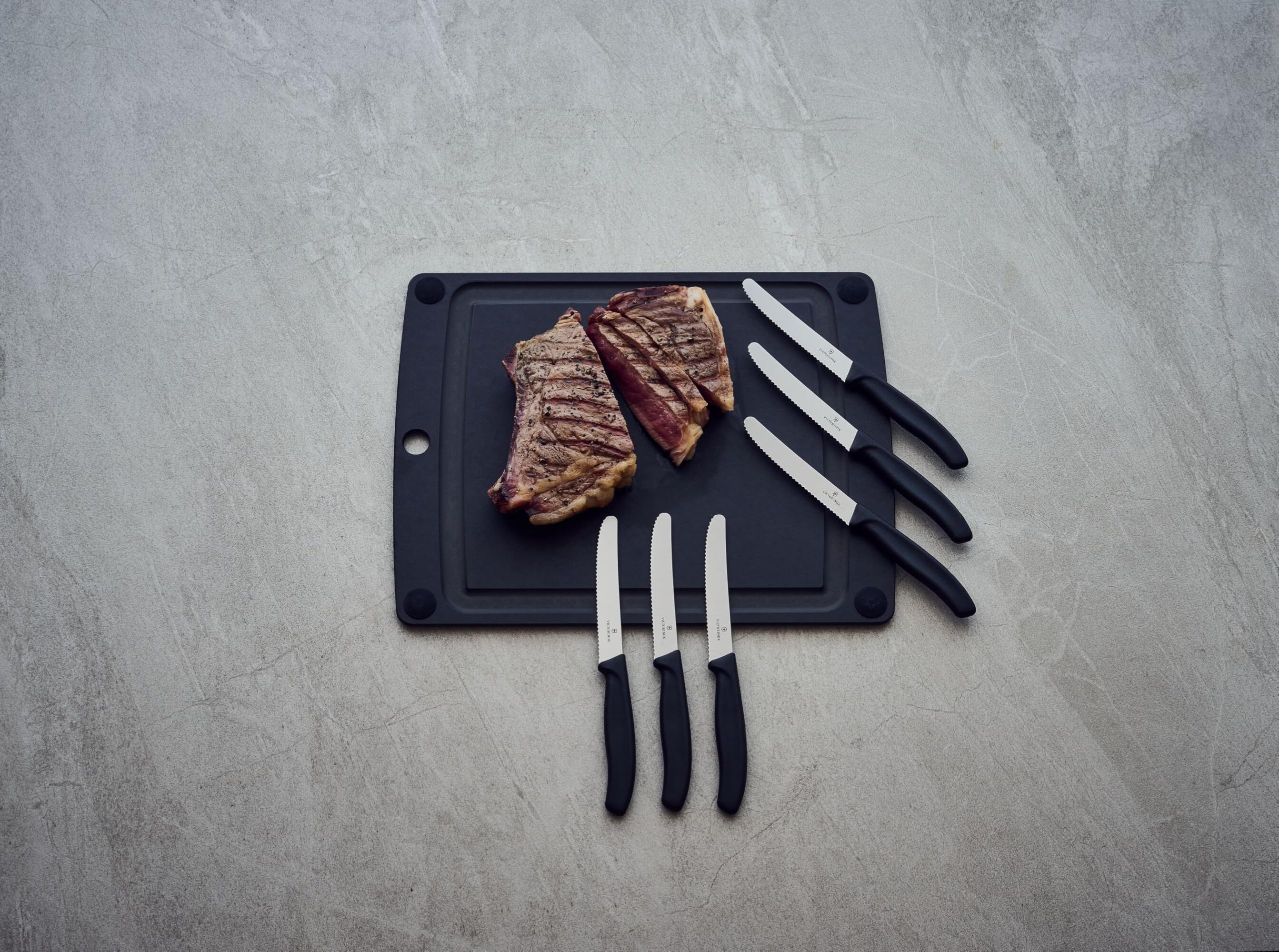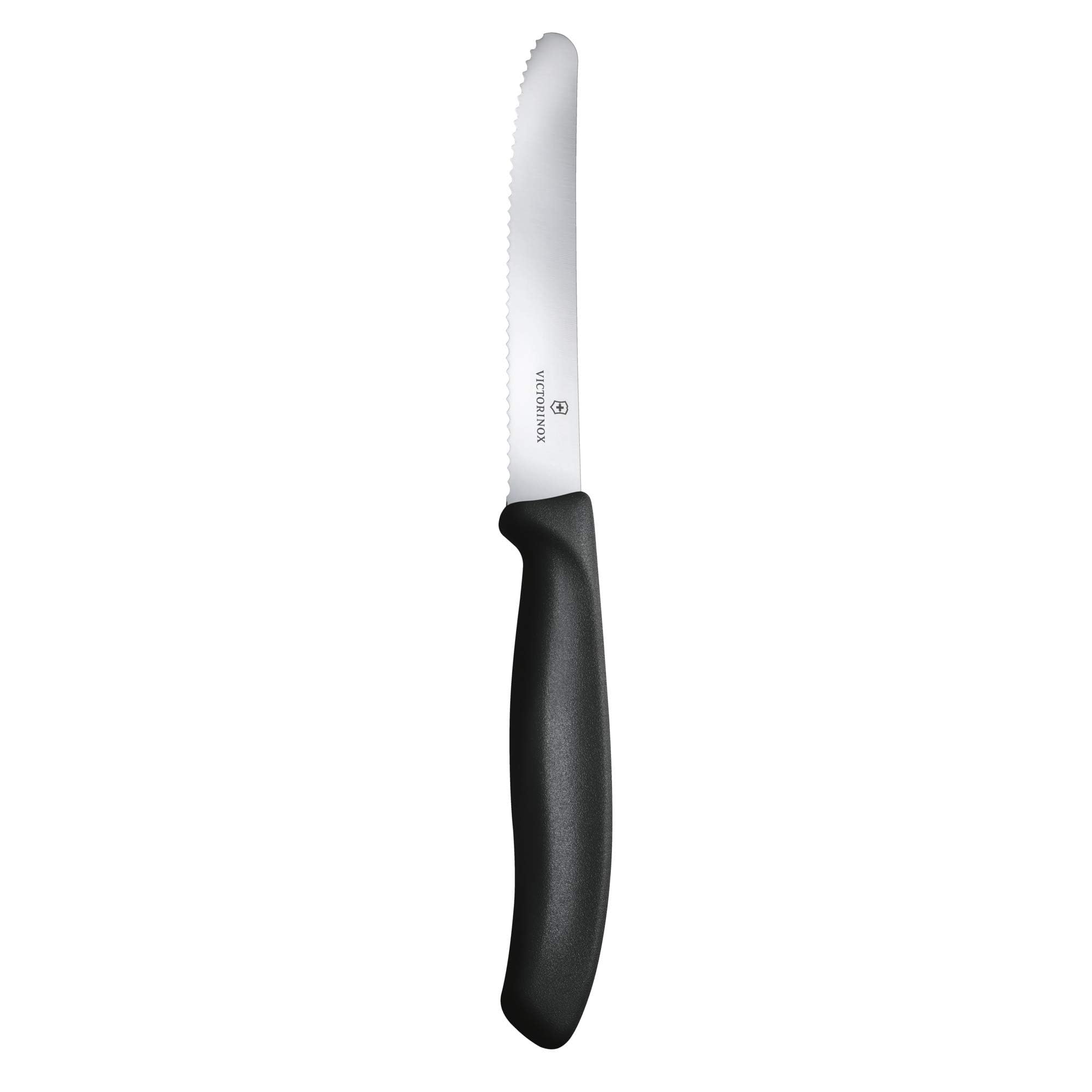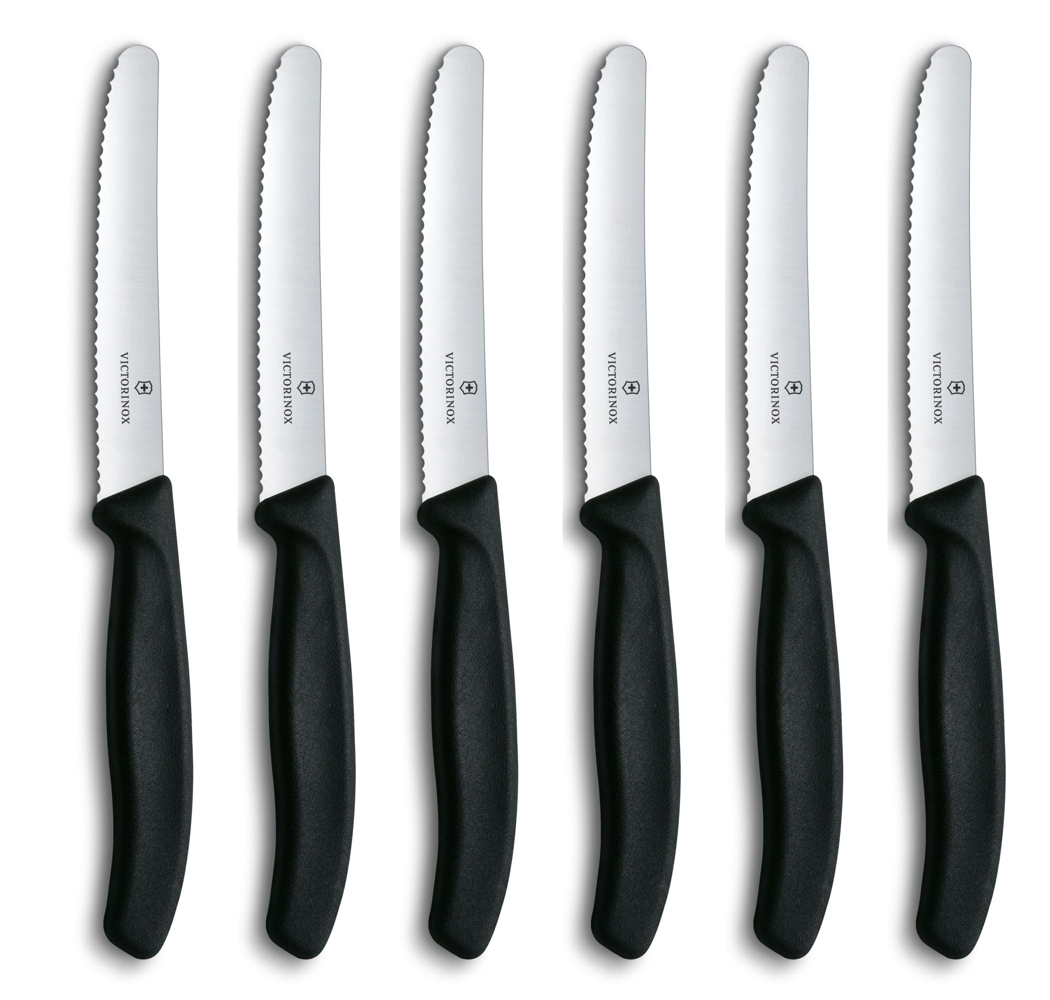 Victorinox Swiss Classic, Frühstücksmesser, Brötchenmesser, Scharfe Klinge, Wellenschliff, 11 cm, Kunststoffgriff, Rostfreier Stahl, Set 6teilig, Schwarz
