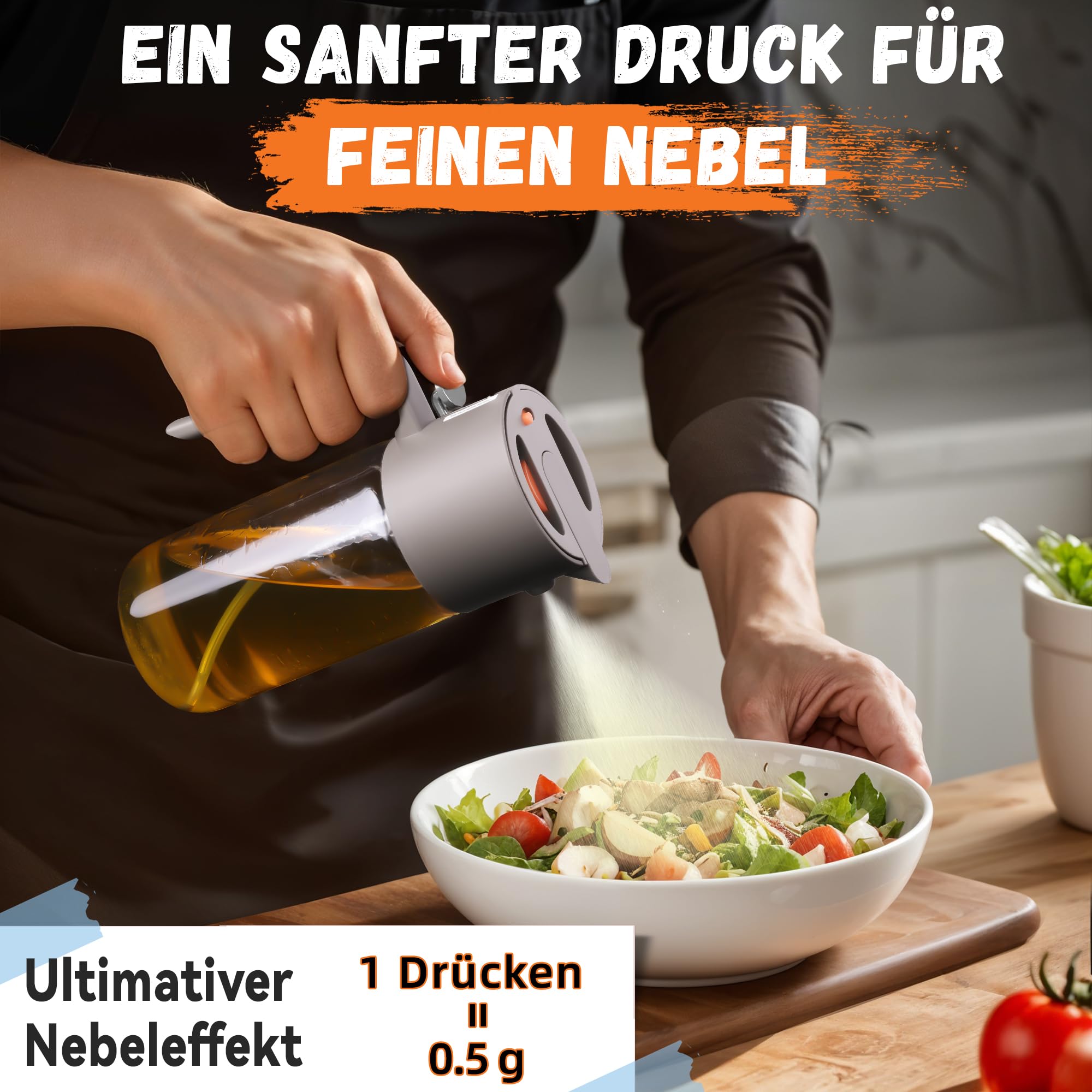 VOMEP Olive Oil Dispenser, 2 in 1 Oil Sprayer for Cooking, 16oz/470ml Glass Oil Spray Bottle with Pourer, Food-grade Oil Dispenser and Oil Sprayer for Kitchen, Salad, Frying, BBQ(Silbergrau)