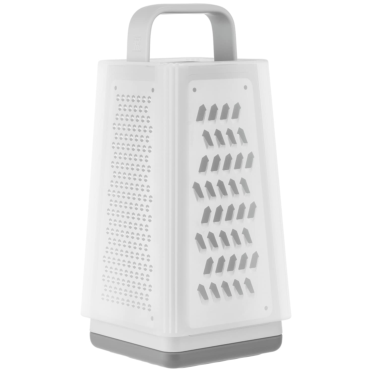 ZWILLING Z-Cut Vierkantreibe 11L x 11B x 26H cm, mit Zwei-Wege-Reibtechnologie, Auffangschale, Edelstahlklinge, 4 Reibeflächen, Kartoffelreibe, Parmesanreibe, Gemüsehobel, spülmaschinengeeignet Grau
